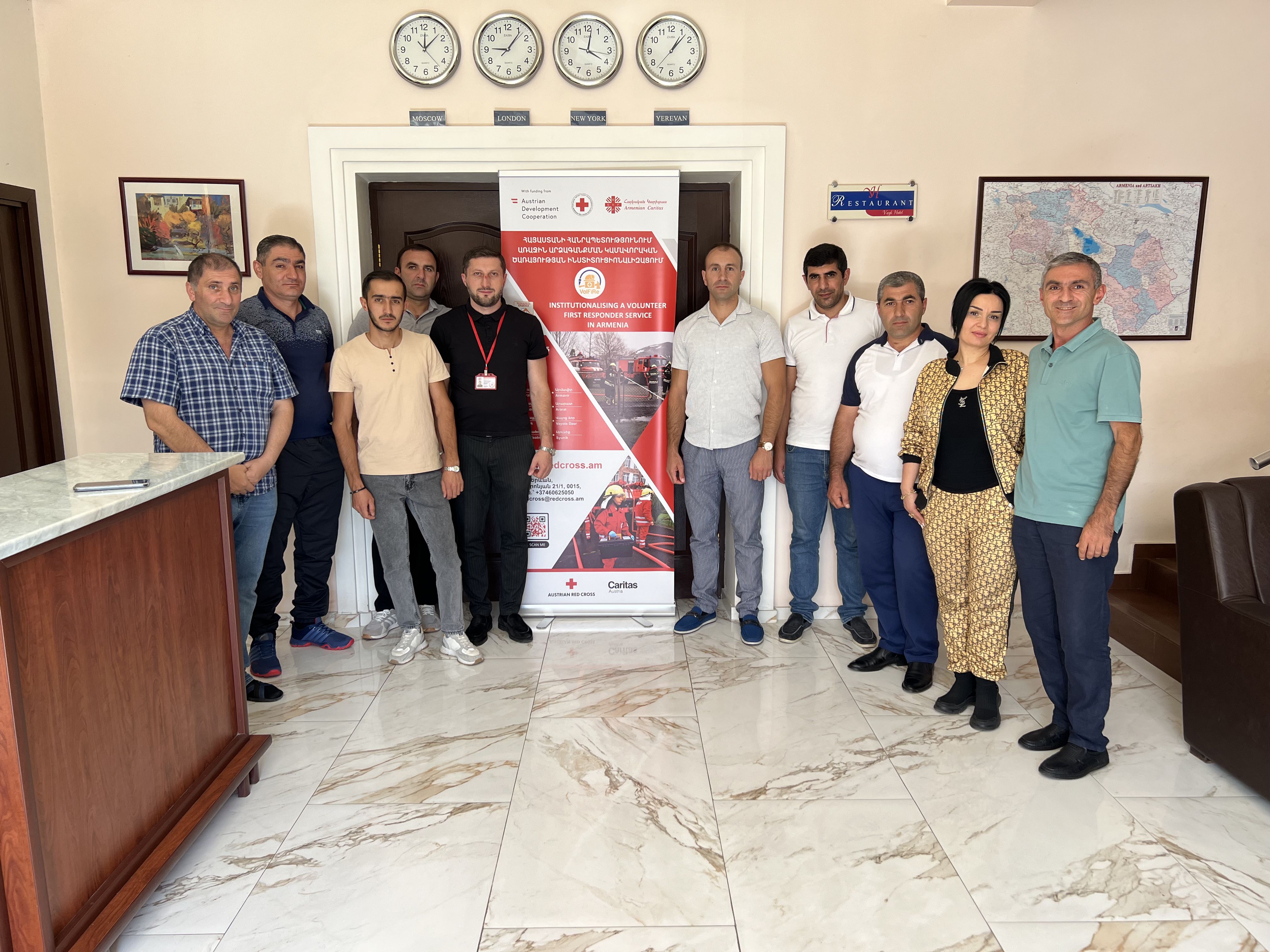 The VolFiRe workshop ‘’Induction for counterparts’’ has been organised by the Armenian Red Cross Society in the city of Vayk on 31st of August and 1st of September 2023 for 6 of 12 communities where Volunteer Fire Rescue Group (VFRG) will be established. The 6 communities represented were Baghramyan, Garni, Vedi, Areni, Vayk, Kapan.