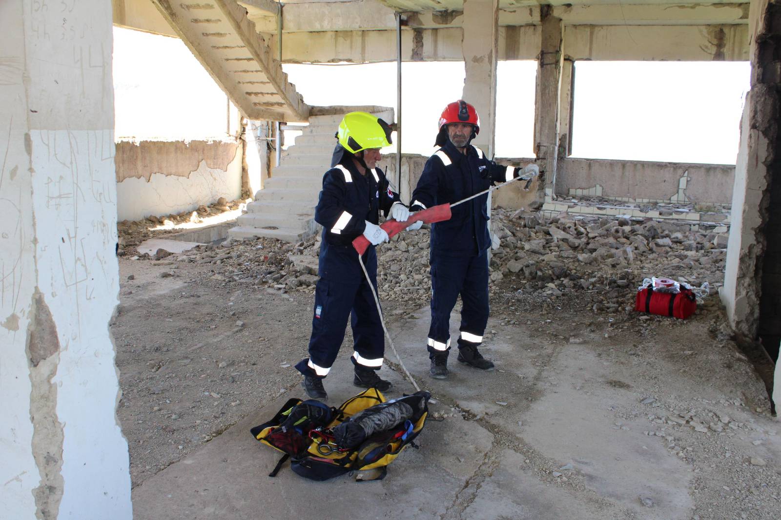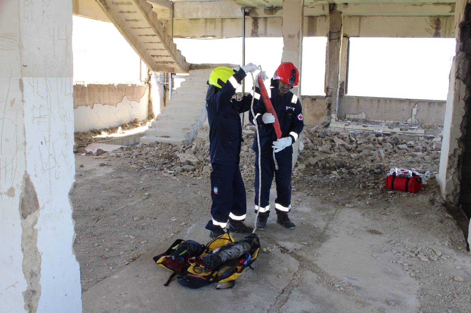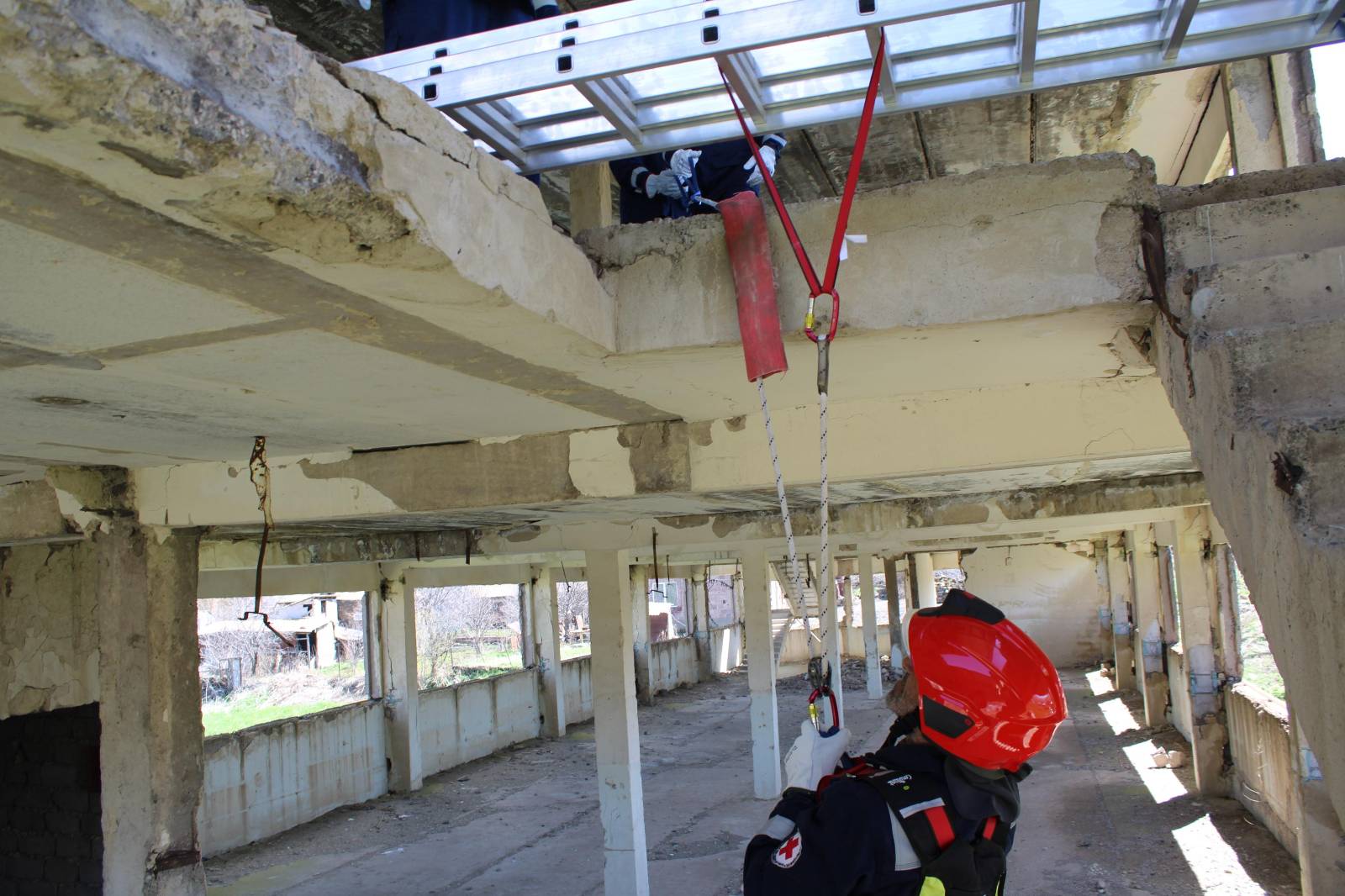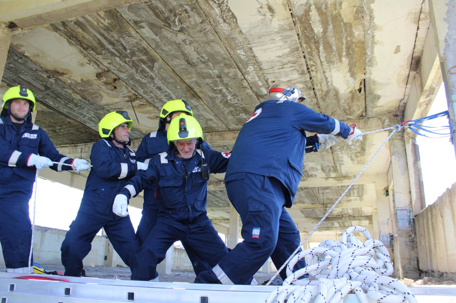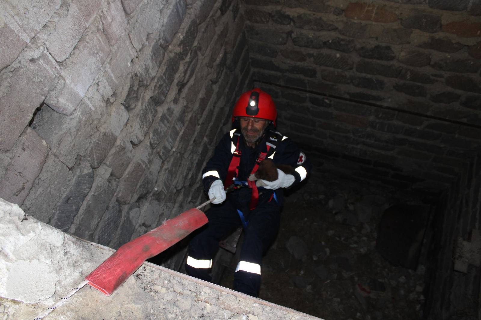 The two-day training focused on fire and rescue, with a specific exercise for rescuing a little dog from a well in a building with difficult access.