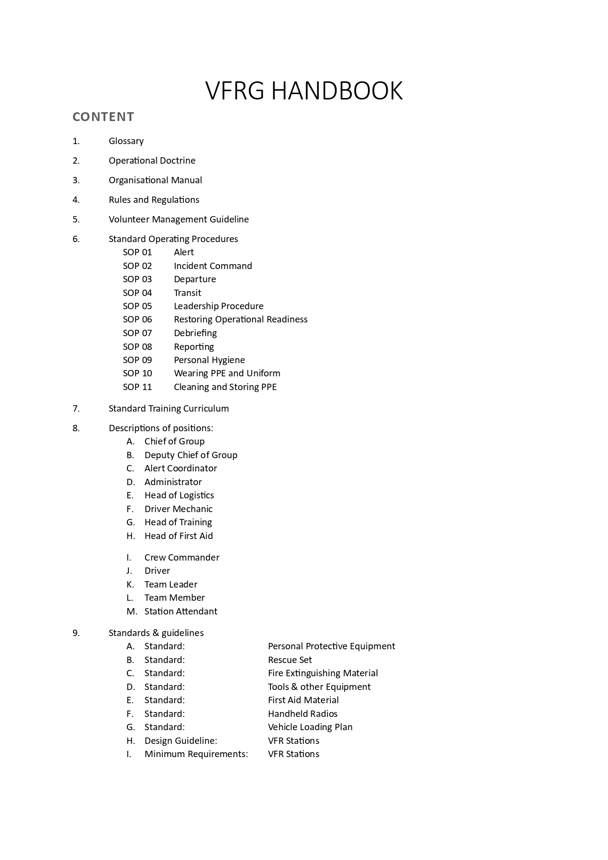 - Standard Operating Procedures