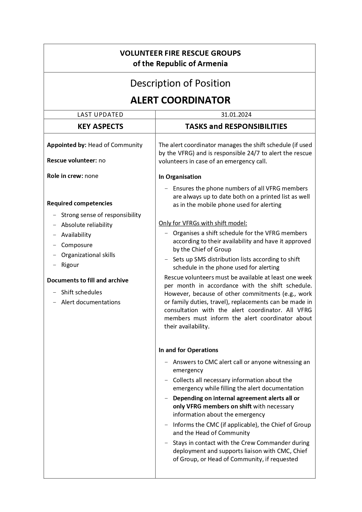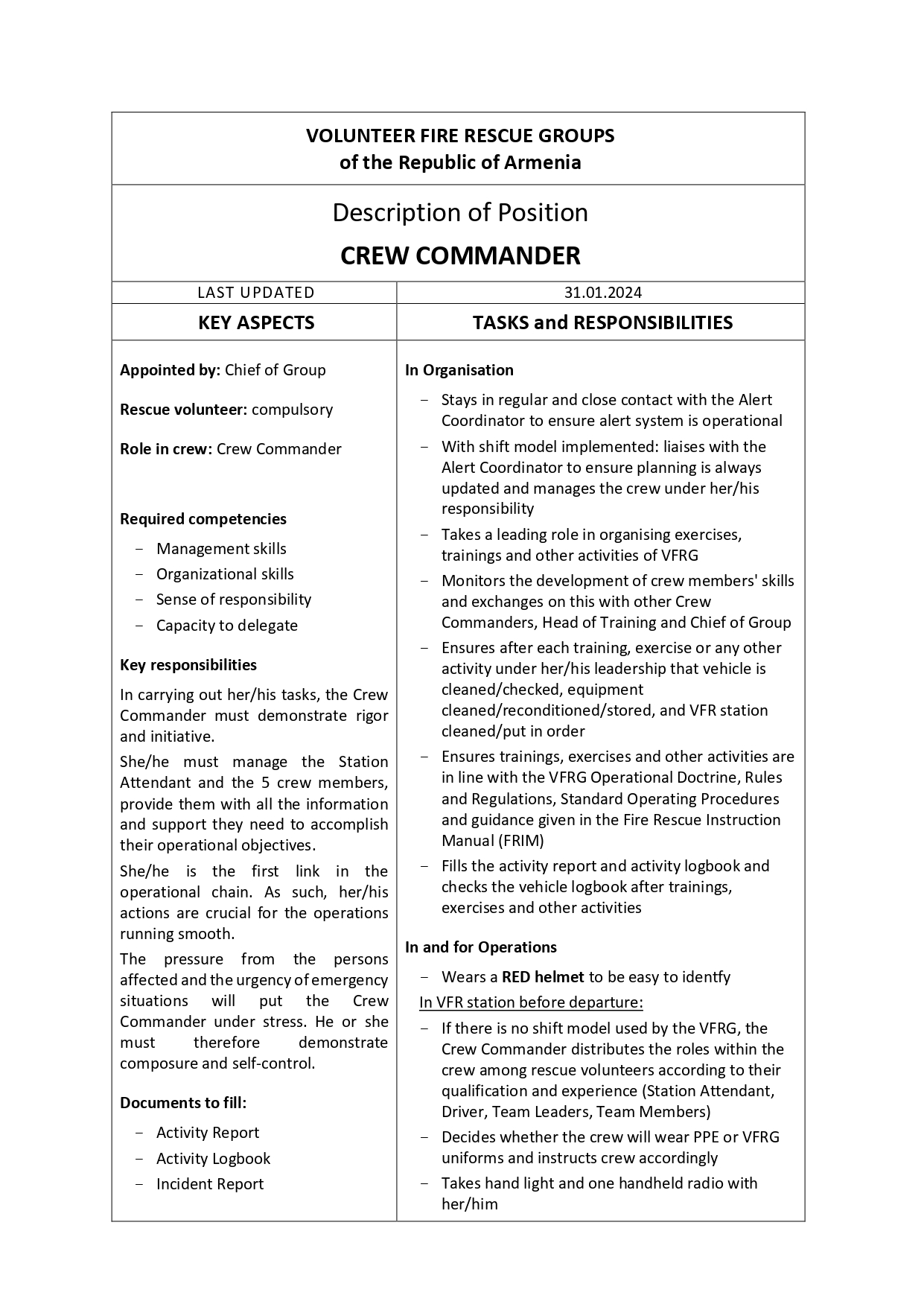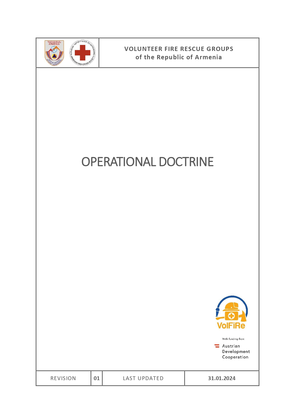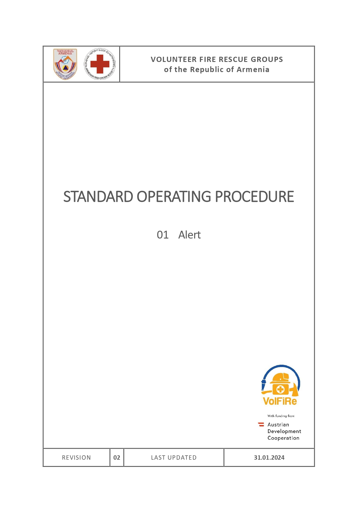 The VFRG handbook describes the Volunteer Fire Rescue System of the Republic of Armenia. It includes all information related to the Volunteer Fire Rescue Groups. It is used by volunteers, communities and local RS fire stations to organise and run the VFRGs.