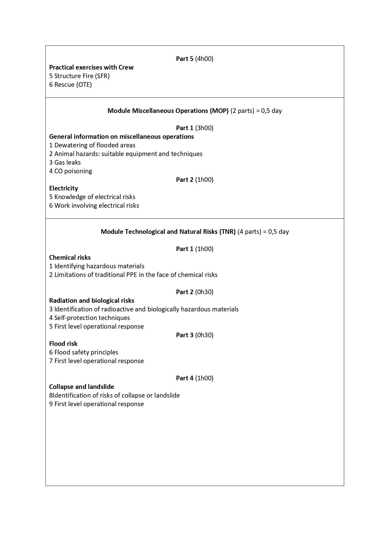 - Standard Training Curriculum
