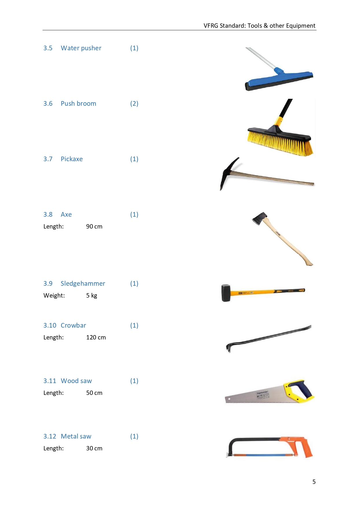 - Standard: Tools & other Equipment
