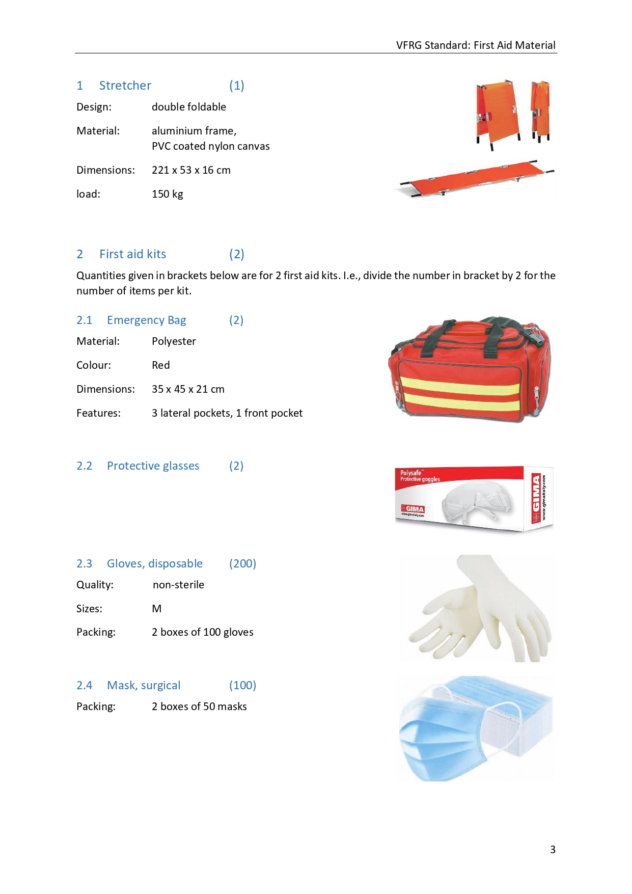 - Standard: First Aid Material